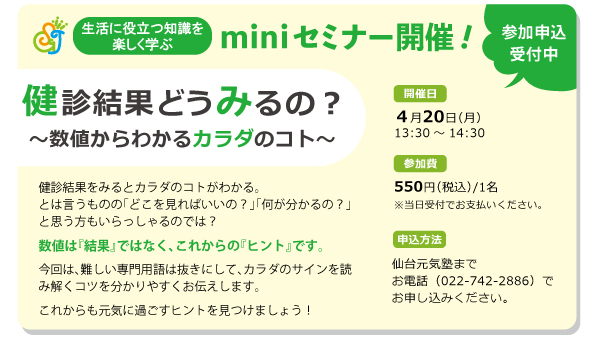 仙台元気塾【早期会員更新受付中!】〜2月28日(火)まで